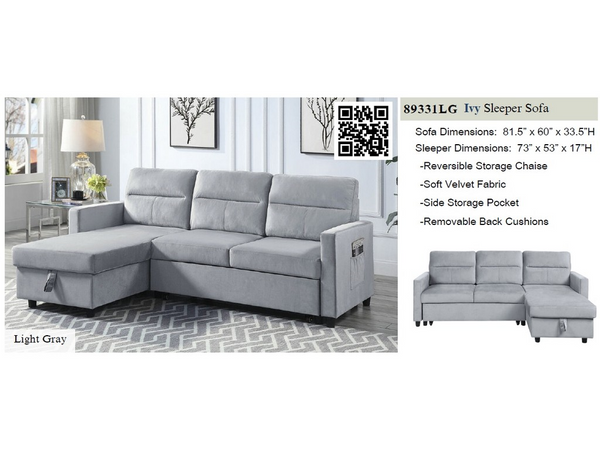 Ivy Light Gray Sleeper Sectional Sofa (2pkg)