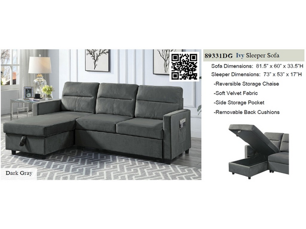 Ivy Velvet Reversible Sleeper Sectional Sofa with Storage